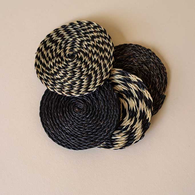 Coaster made from horsehair, ideal for protecting surfaces while adding a delicate, handcrafted touch to the table.