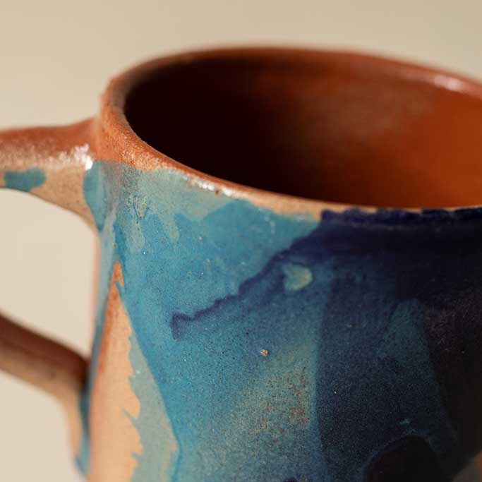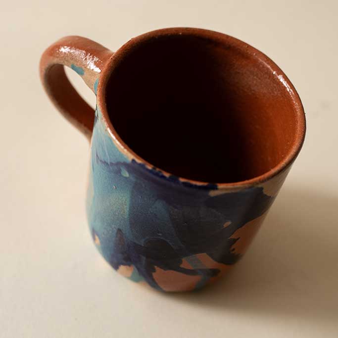 Red clay mug from Jalisco, handcrafted and lead-free. Featuring a design developed in collaboration with the artisan and hand-painted. Ideal for enjoying hot beverages such as coffee, chocolate, and more.