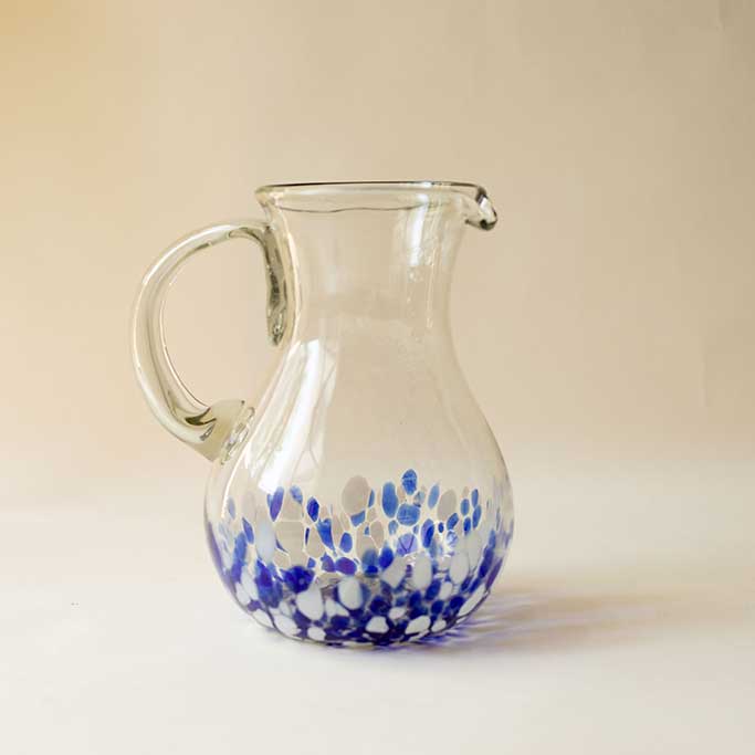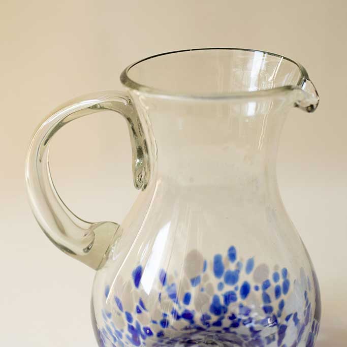 A handcrafted large water pitcher featuring a traditional silhouette and a speckled finish that adds texture and character. Each piece is individually made, resulting in subtle variations that highlight its artisanal nature. Its generous capacity and comfortable handle make it ideal for serving water or beverages in both everyday settings and more curated table arrangements.