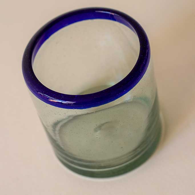 Old Fashioned glass with blue rim