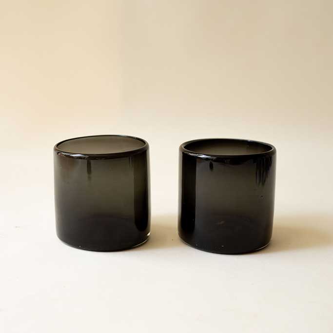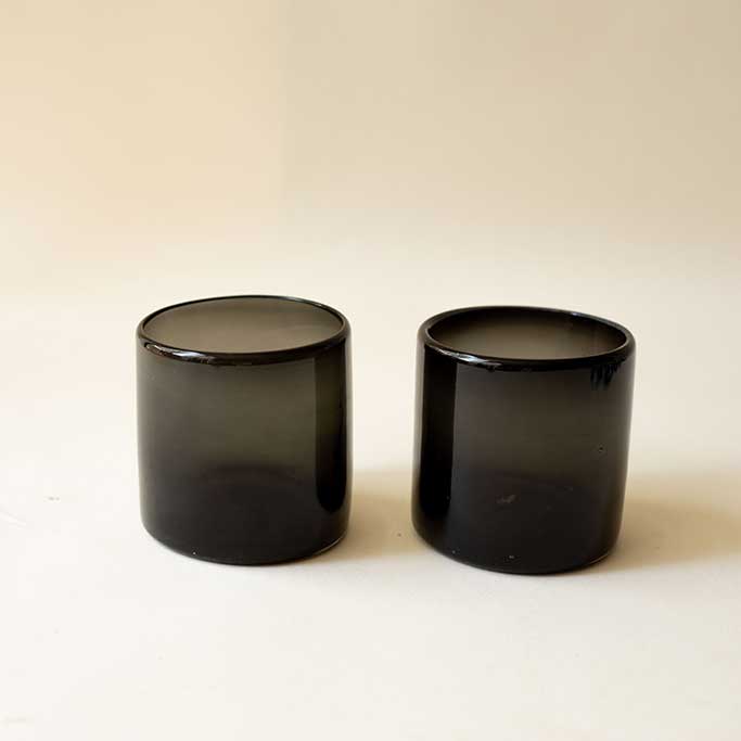 A handcrafted old fashioned glass in a soft smoke finish, defined by its clean 8×8 silhouette. Each piece is individually made, resulting in subtle variations that enhance its artisanal character. Its solid feel and balanced proportions make it ideal for classic cocktails or a refined everyday table setting.