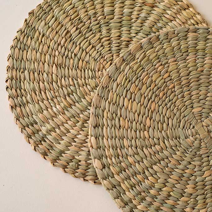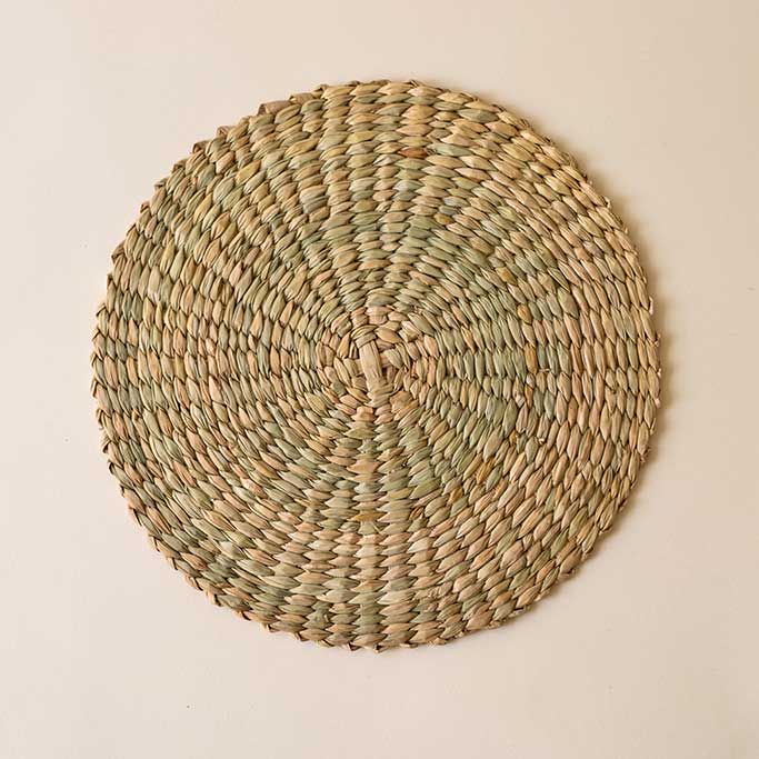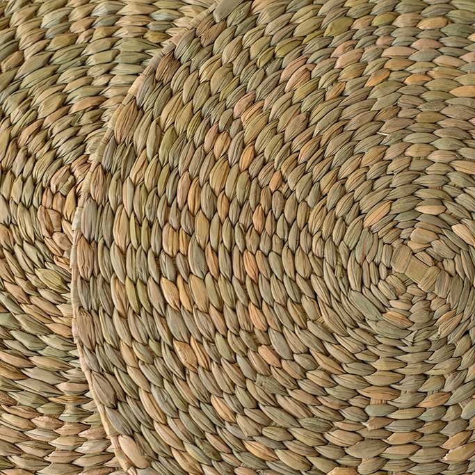 Mantel individual elaborado con fibras naturales de tule y chuspata, ideal para vestir la mesa con un estilo orgánico y artesanal.