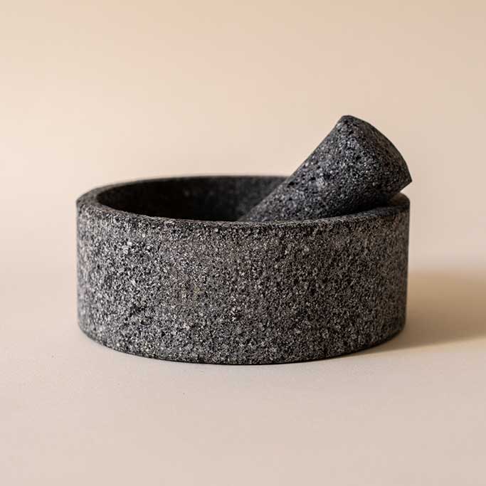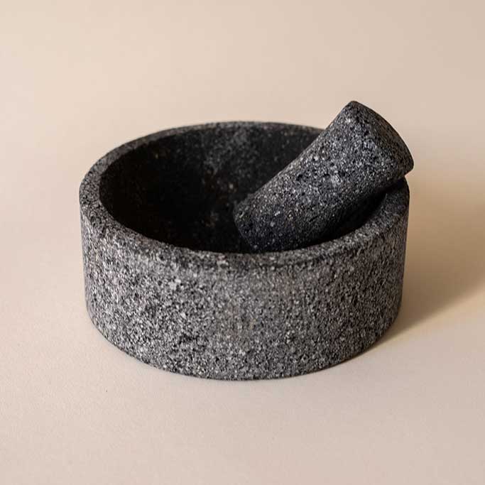Mortero de piedra de basalto ideal para realizar salsas tradicionales para compartir y moles especias. También puede ser utilizado para servir algunos platillos o acompañamientos Guacamole.